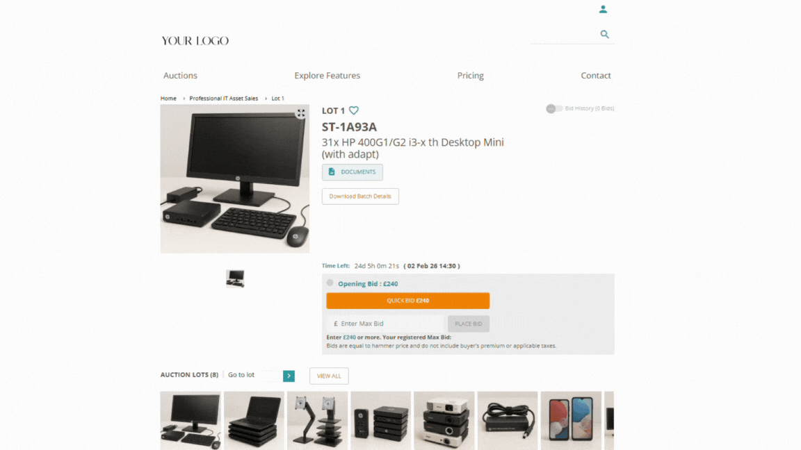 Launch fully white-labelled auctions that align seamlessly with your organisation’s identity — from domain and emails to the bidder experience itself.